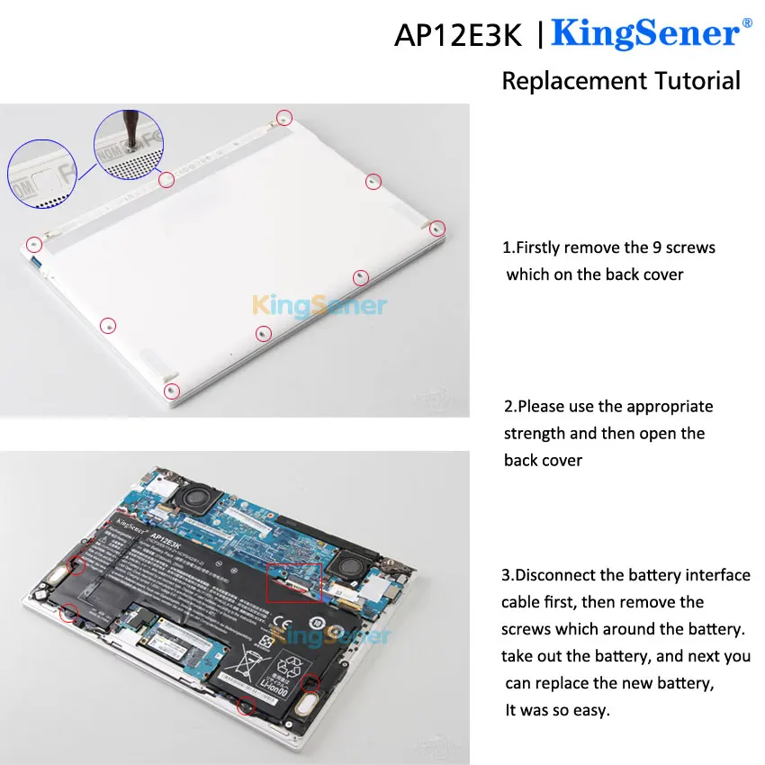 Аккумулятор KingSener AP12E3K для ноутбука Acer Aspire S7 S7-191, ультрабук 11 дюймов 1CP365114-2 1CP54261-2 AP12E3K 7,4 В, 3790 мАч28 Втч