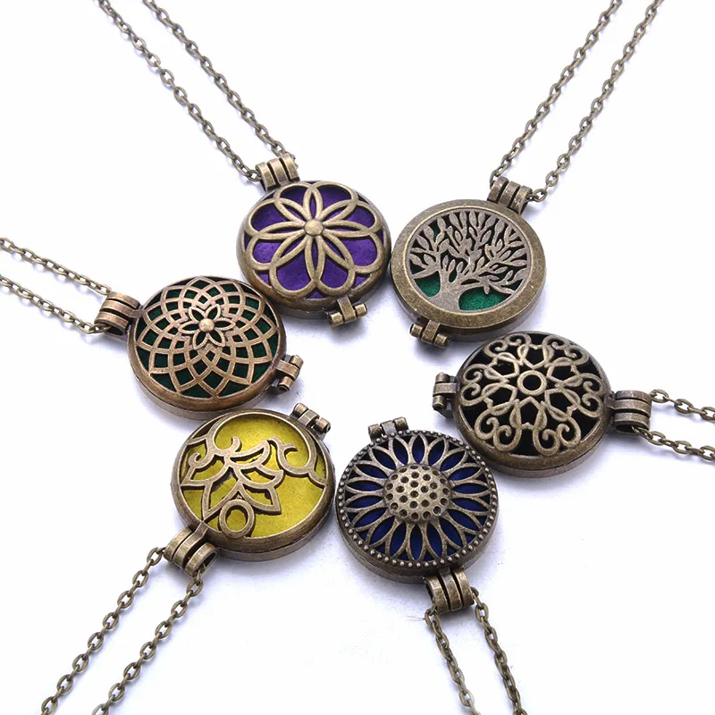 Винтажное ожерелье с бронзовым цветком и аромадиффузором, ожерелье с подвеской для ароматерапии и эфирным маслом, модные женские украшения