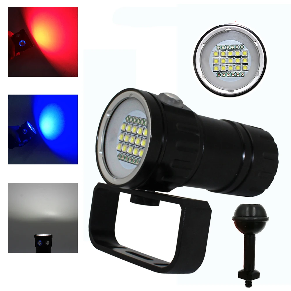 Фонарик для подводной фотосъемки, 27 Светодиодный, XM-L2, белый + 6x XPE красный + 6x XPE синий, водонепроницаемый тактический фонарь