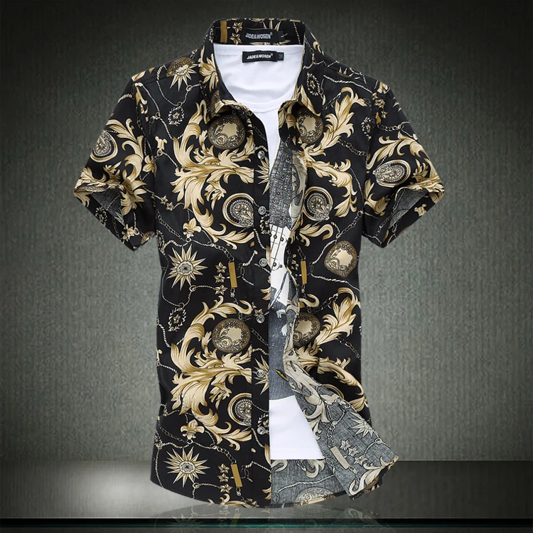 Модная мужская летняя рубашка с коротким рукавом, повседневные рубашки с цветочным принтом для мужчин, тонкая мужская рубашка, Азиатские размеры