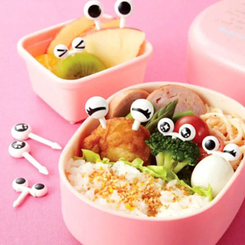 Вилка для фруктов глаза 10 шт.компл., вилка для салата, многоразовая пластиковая детская коробка для бенто, декоративные палочки, прекрасная закуска, товары для кухни