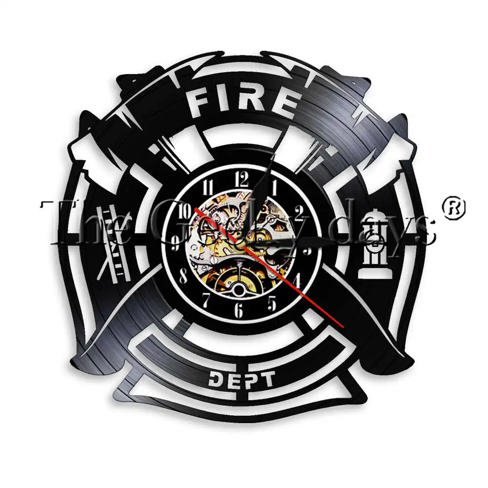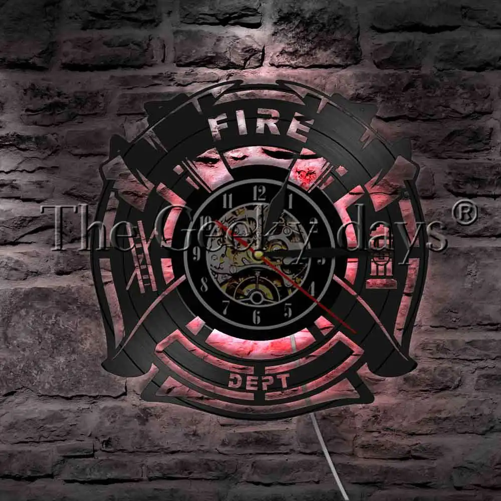 Пожарный знак спасения декоративный настенный светильник Виниловая пластинка настенные часы пожарная часть пожарная машина шланг лестница светодиодный светильник