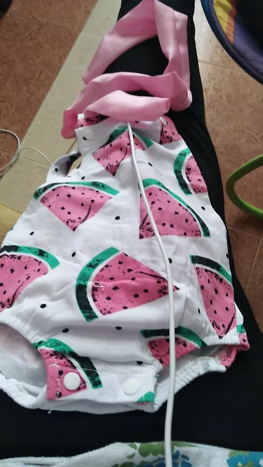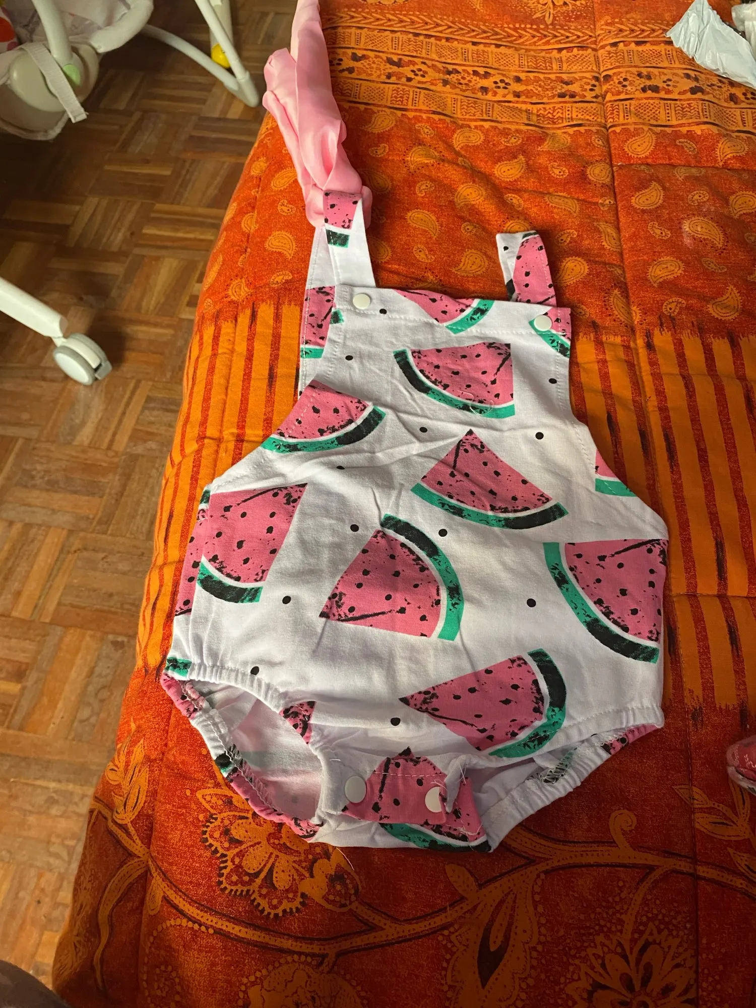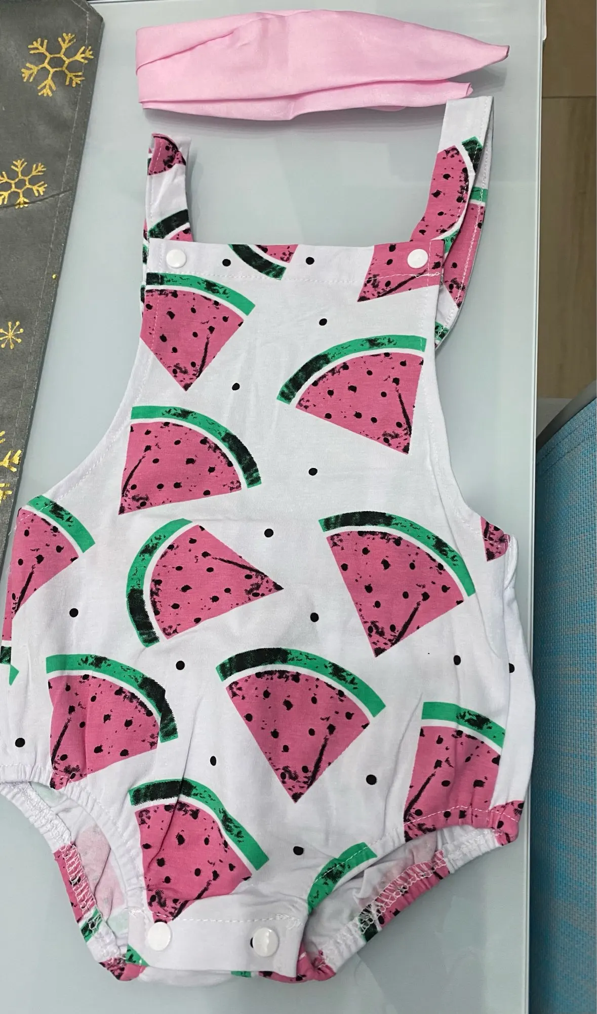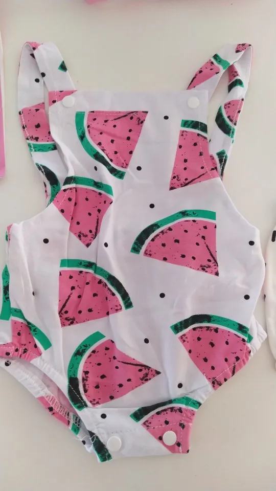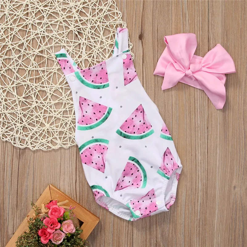 2018 Летний милый комбинезон для маленьких девочек, повязка на голову, с принтом арбуза, летний комплект, новая детская одежда для детей от 0 до 24 месяцев