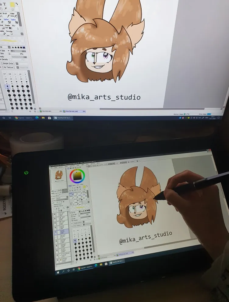 Купила за 21700, доставили за 5 дней. Все отлично работает в SAI, Krita и PS. Дисплей достаточного размера, цвета насыщенные. Подставка, перчатка, наконечники в комплекте. Довольна на 100%.
