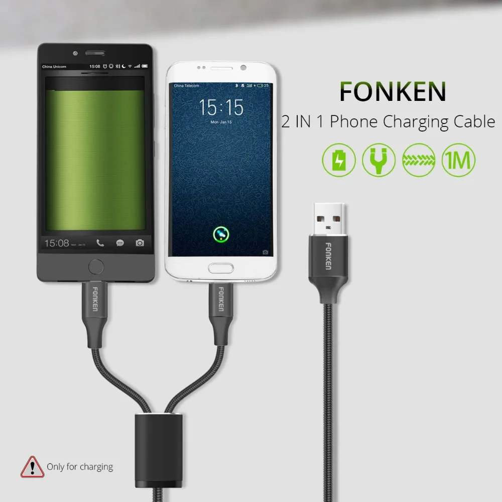 FONKEN 2 в 1 USB-кабель Micro USB Type C кабель для быстрой зарядки USB-Шнур зарядное устройство для телефона в нейлоновой оплетке для Android мобильный телефон кабель