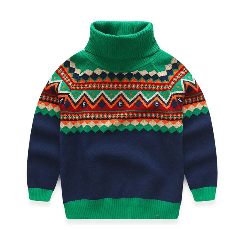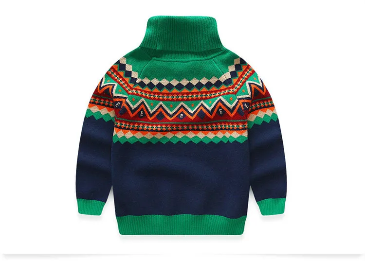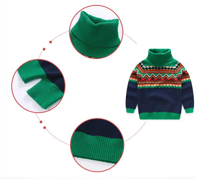 Теплый Зимний вязаный свитер с высоким воротником для мальчиков 3-10 и 12 лет
