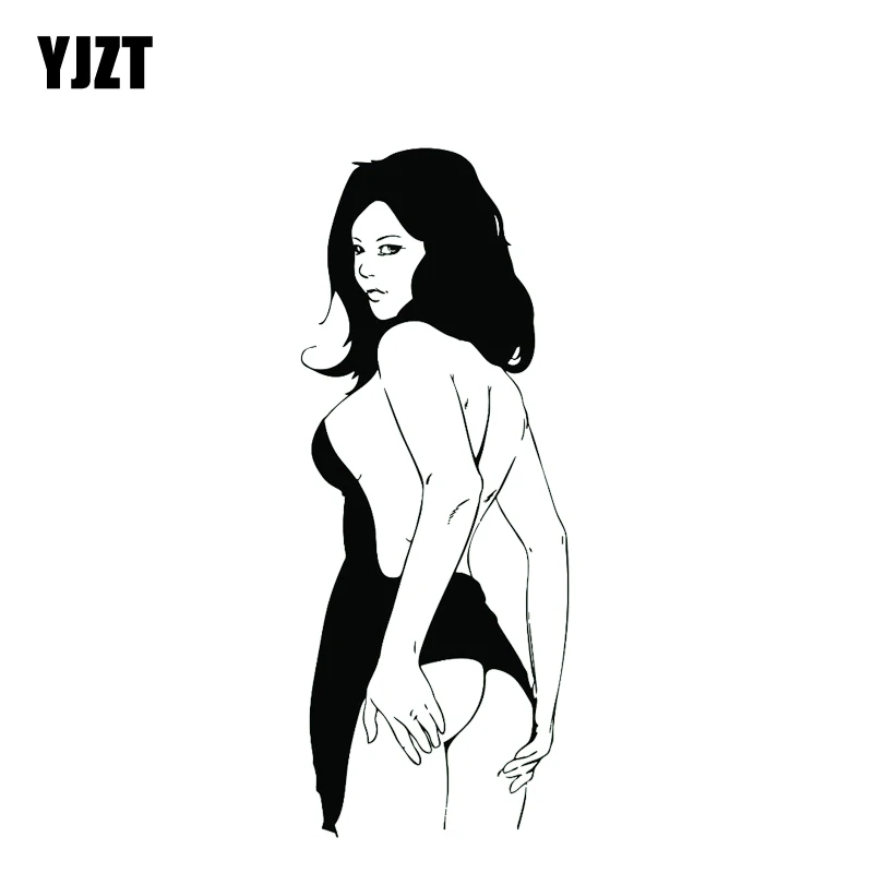 YJZT 6,8*17,1 см привлекательная Женская улыбающаяся Спина Модные Дизайнерские виниловые наклейки, покрывающие тело, хорошее качество, черный/серебристый цвет C20-0315