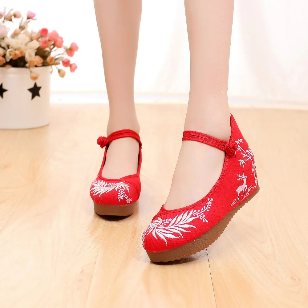 Женские парусиновые кроссовки Veowalk, повседневная обувь со скрытой платформой, с ремешком на щиколотке, с вышивкой в китайском стиле, в стиле ретро