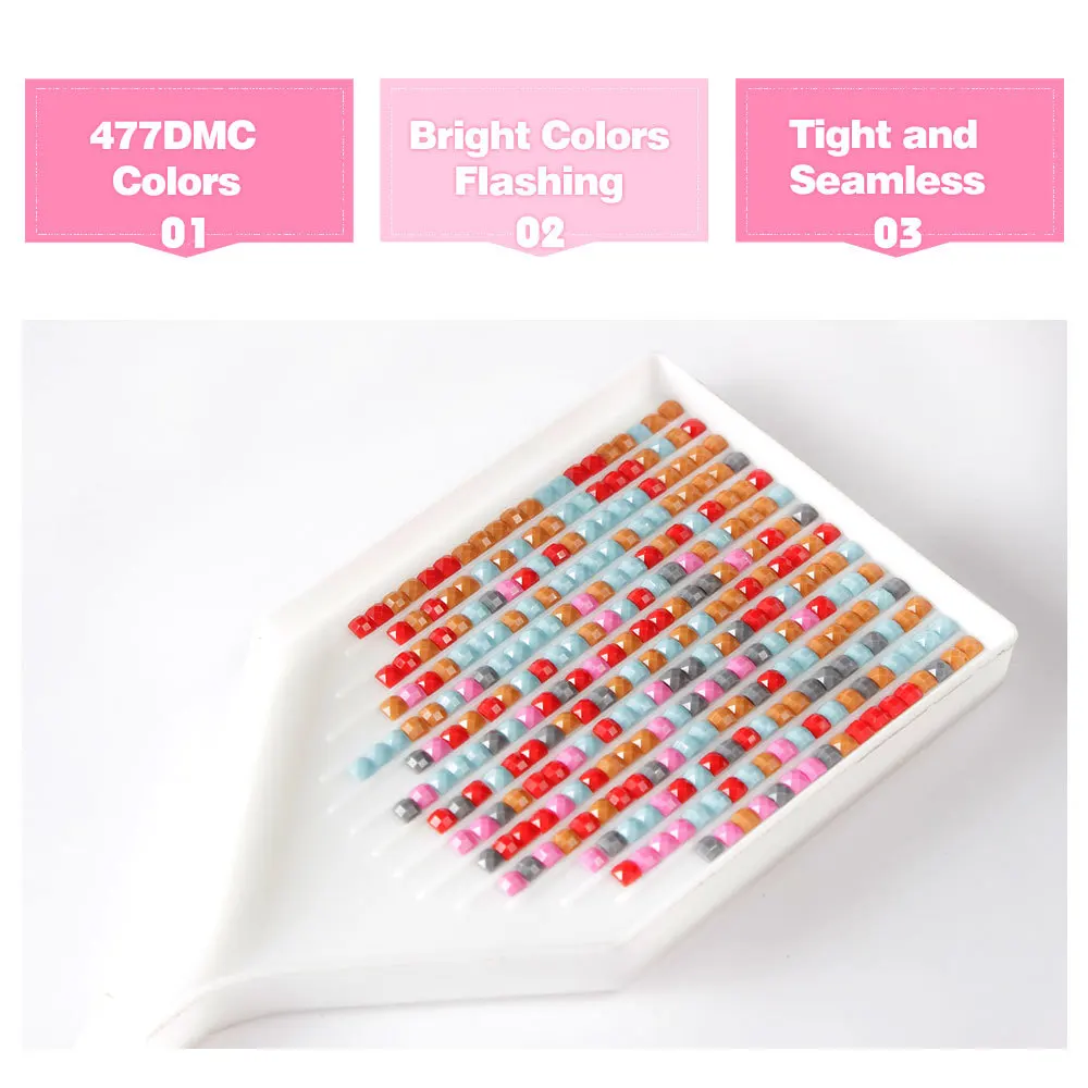 1. Соответствующая таблица символов, найдите алмазы, которые вы хотите вставить.2. Разорвите частичную пленку и приклейте алмаз к холсту в соответствии с соответствующим номером.3. Пинцет может легко закрепить три алмаза, приклеить так быстро.4. Заполните ручку клеем, положите алмазы в тарелку.5. Используйте круглый конец, чтобы приклеить бриллиант и слегка нажмите.6. После завершения слегка прижмите бриллианты рукой или книгой, чтобы крепко прикрепить их.