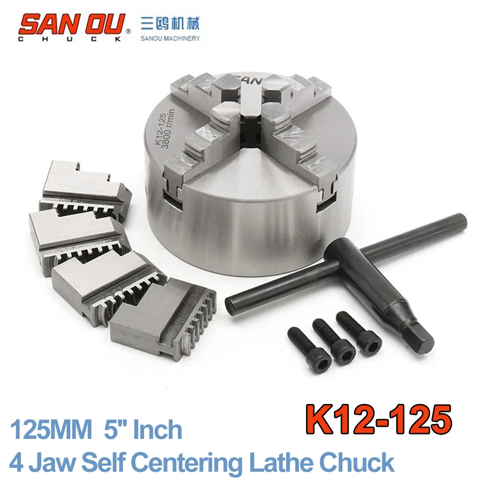 4-кулачковый самоцентрирующийся токарный патрон 125 мм 5 дюймов SANOU K12-125, закаленный Реверсивный монтажный инструмент для сверления фрезерная Деревообработка