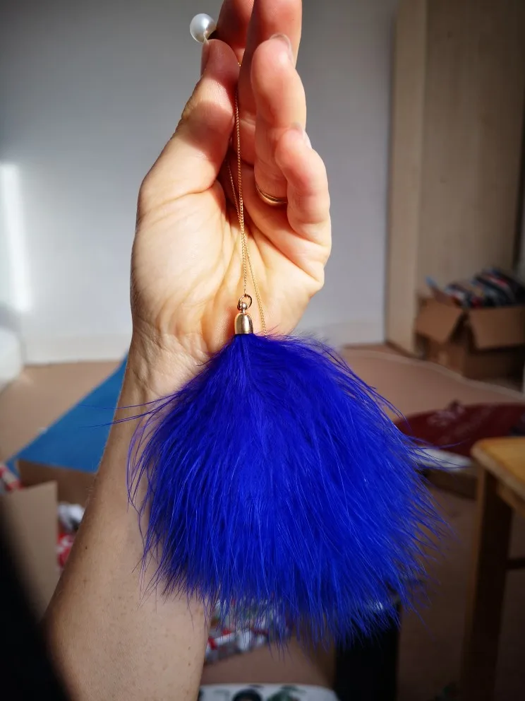 Голубой цвет как на фото. Немного растроило качество именно в этом цвете. Перья прикреплены плохо. Из-за этого сразу вылетело 2 пера.