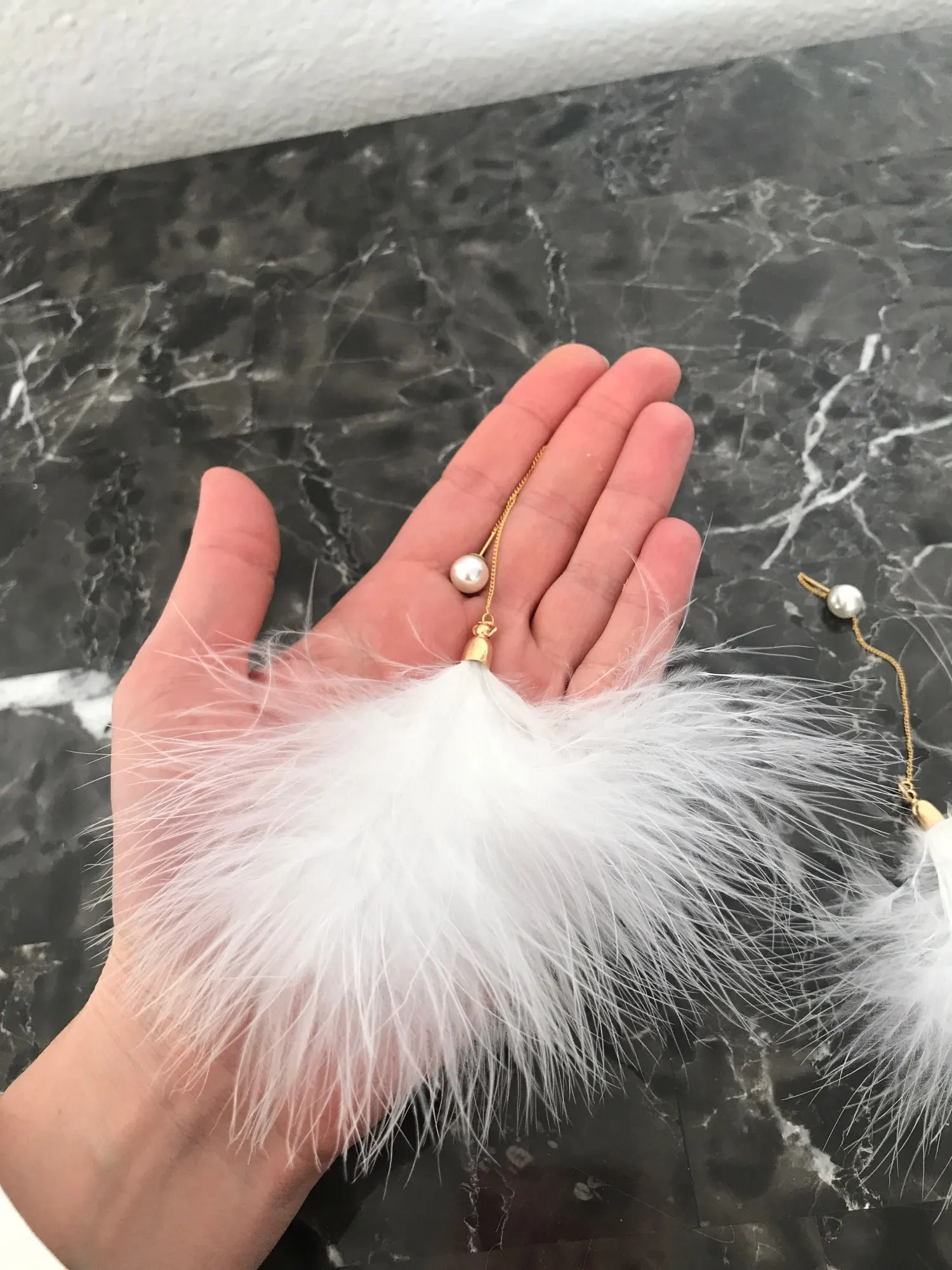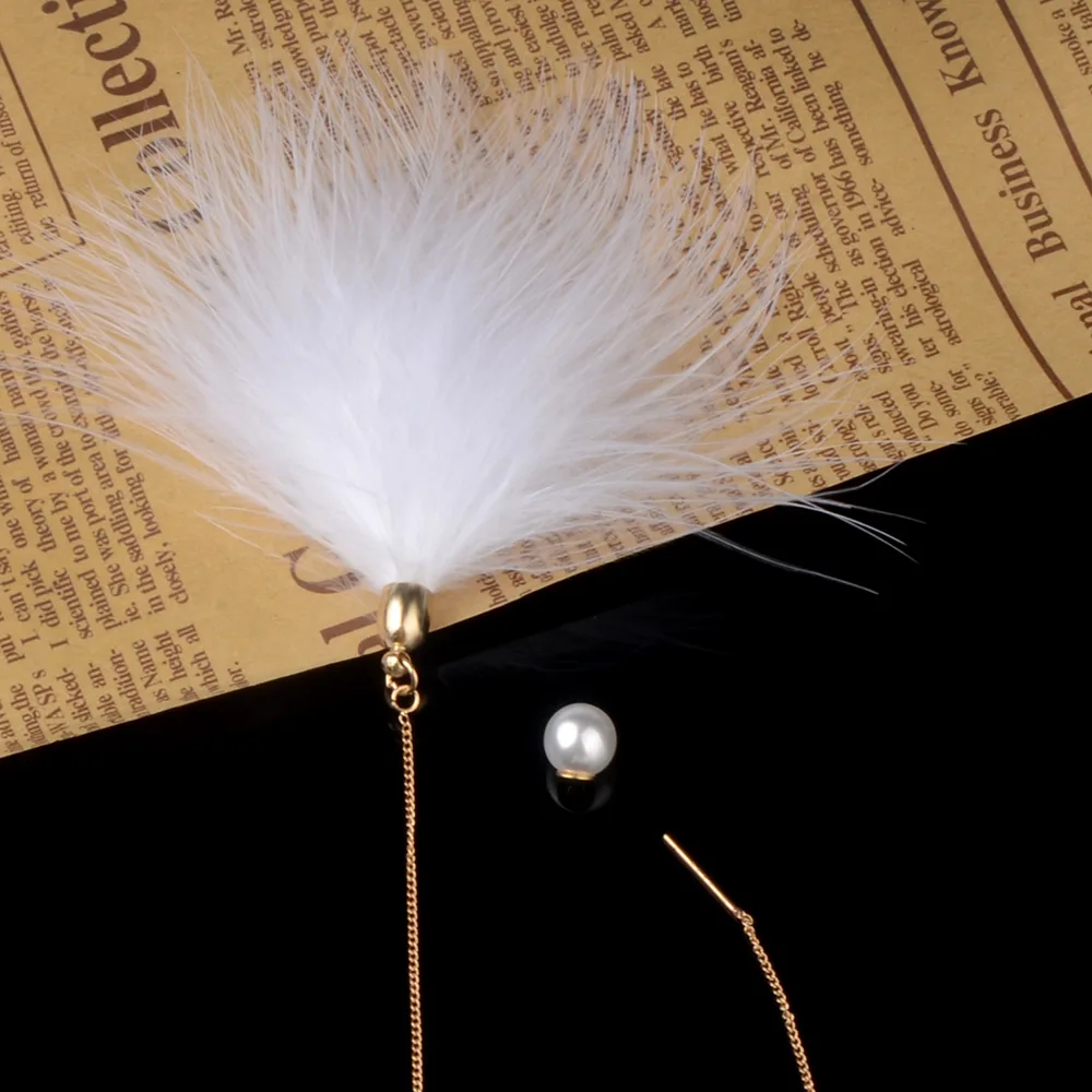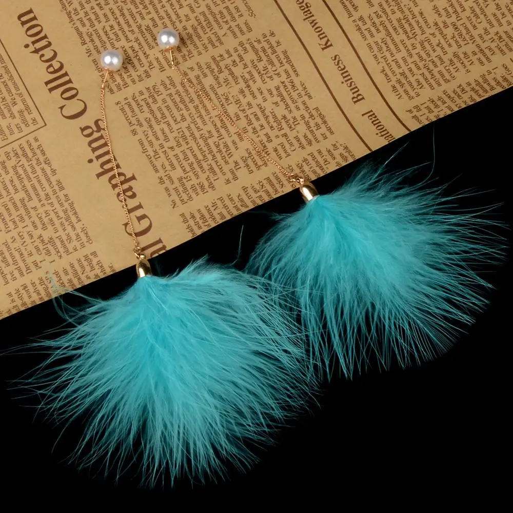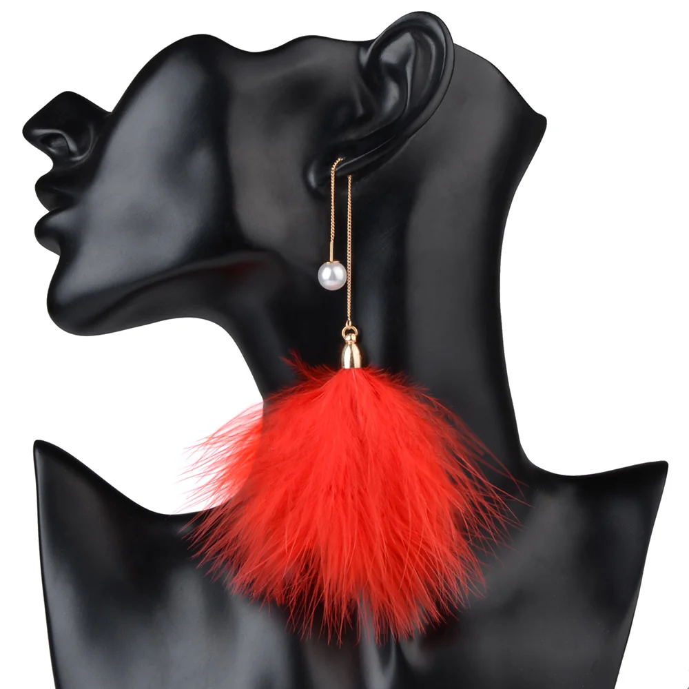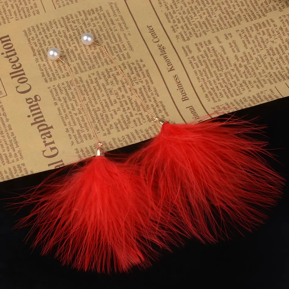 LFPU элегантные пушистые Серьги с перьями эффектные жемчужные цепи длинные висячие серьги ювелирные изделия для женщин бохо