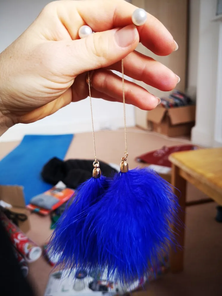 Роскошные серьги. Подойдут девушкам с длинными шеями, иначе перья будут лежать на плечах