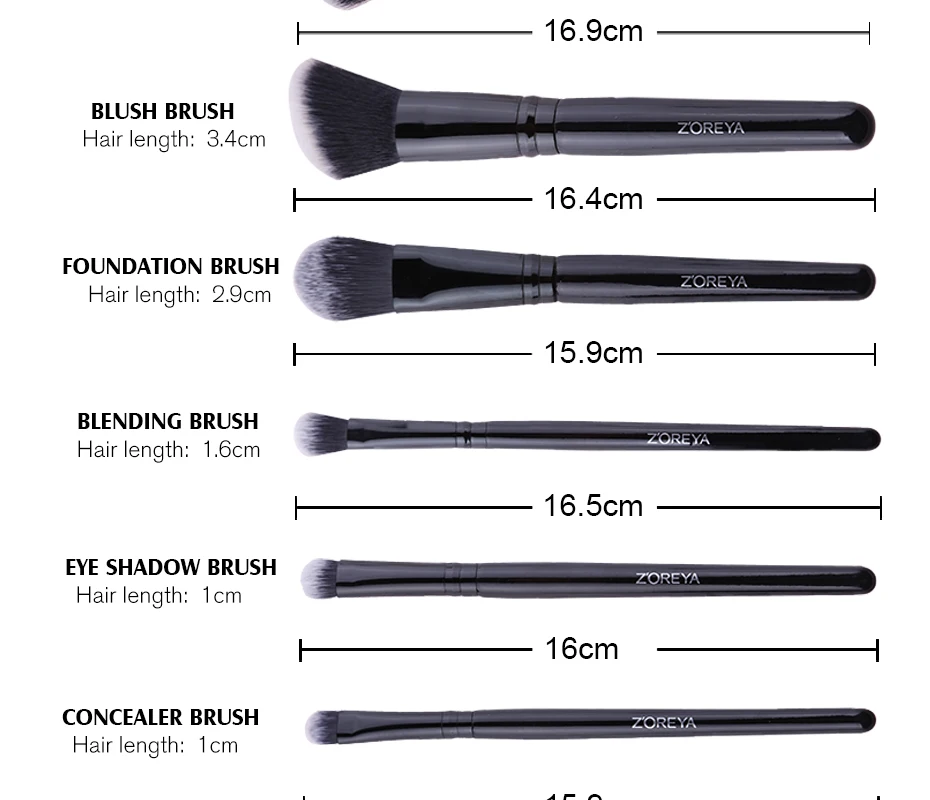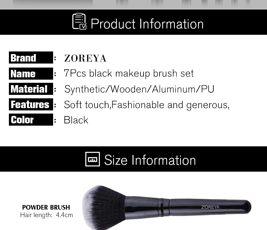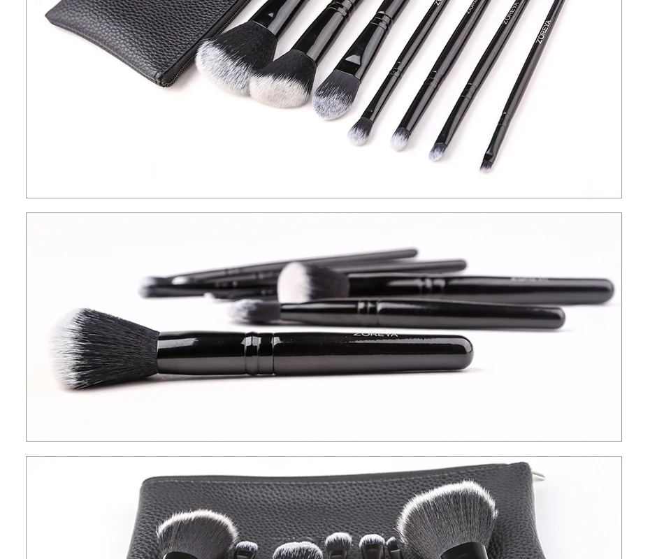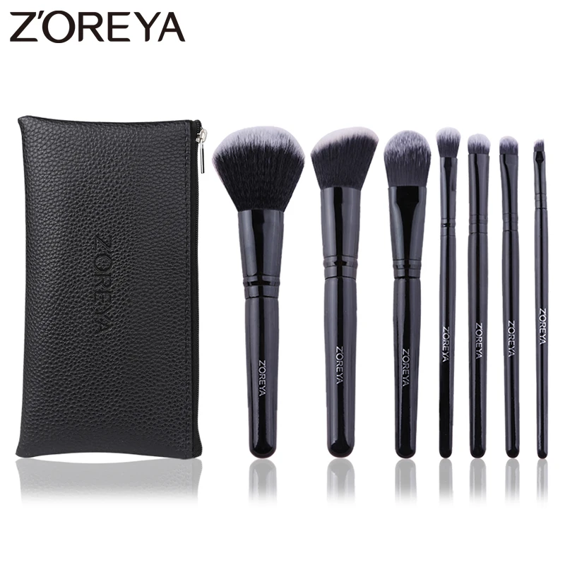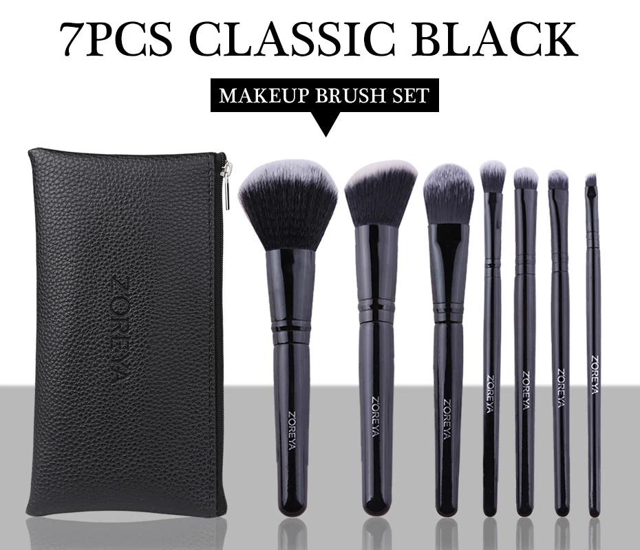 Бренд Zoreya, черные Угловые румяна, безжалостные кисти для макияжа, Удобная синтетическая пудра, тени для век, консилер, 7 шт., косметический набор