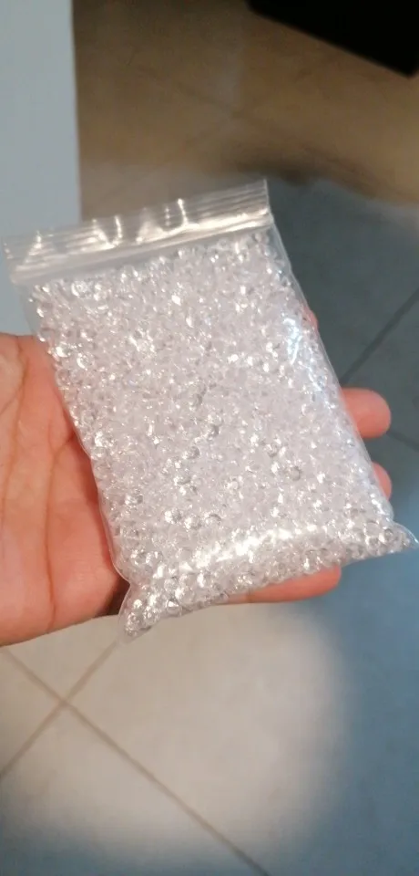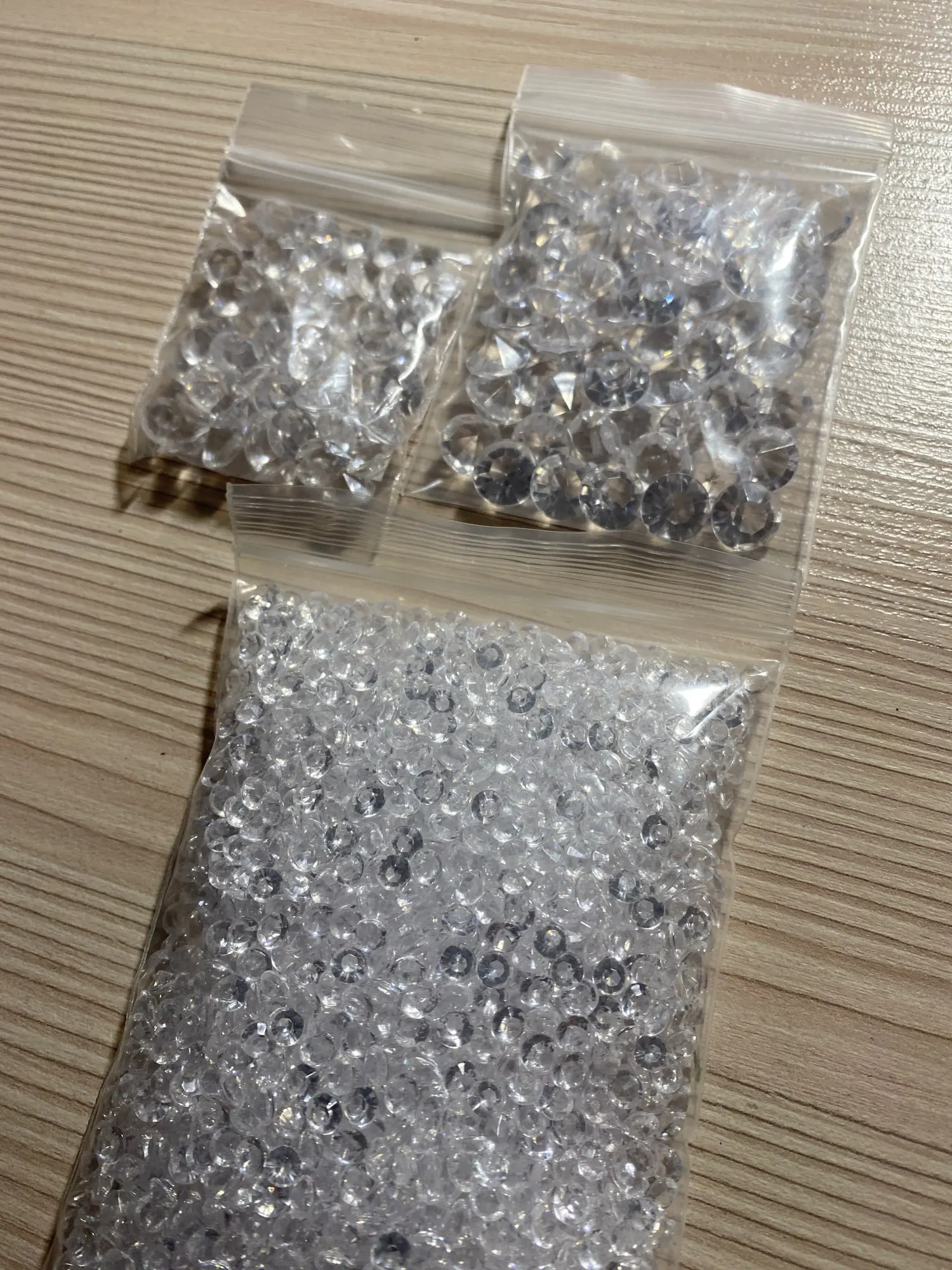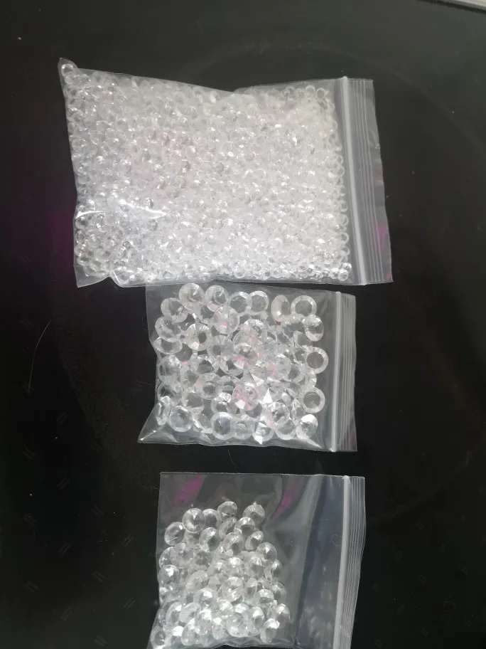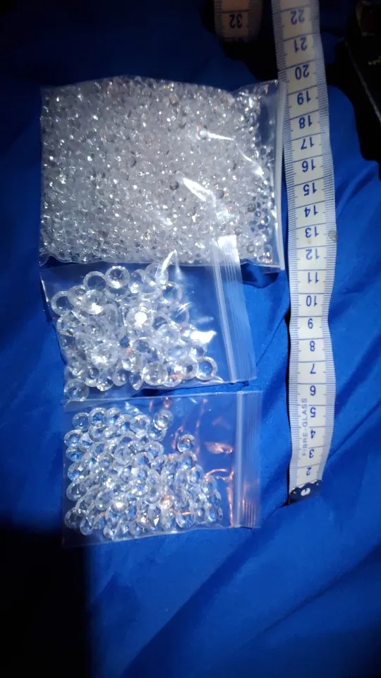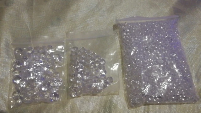I'm a big fan of this scatter crystal confetti. There of course is a lot more small sized scatters in this order than there are of the bigger sizes as can be seen by my photos. Sellers photo shows more larger sizes than small, so deduct one star and I'll give a 4 star rating.