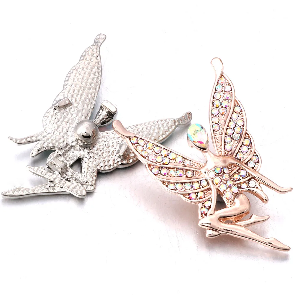 6 шт.лот, новые ювелирные украшения с большим ангелом для девушек, розовое золото, серебро, красивые кнопки 18 мм, подходят для самостоятельного изготовления браслетов для женщин