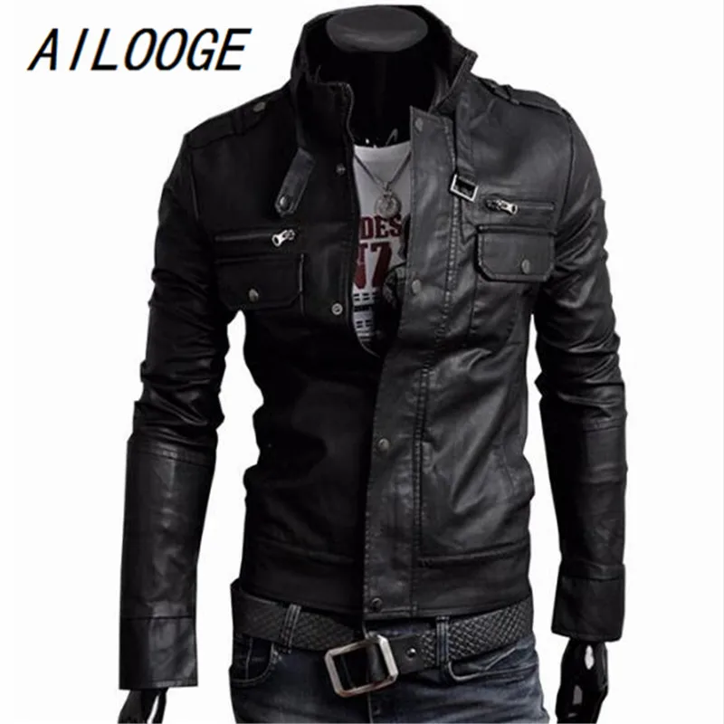 Мужская мотоциклетная куртка AILOOGE, куртка из искусственной кожи в классическом стиле, 2021