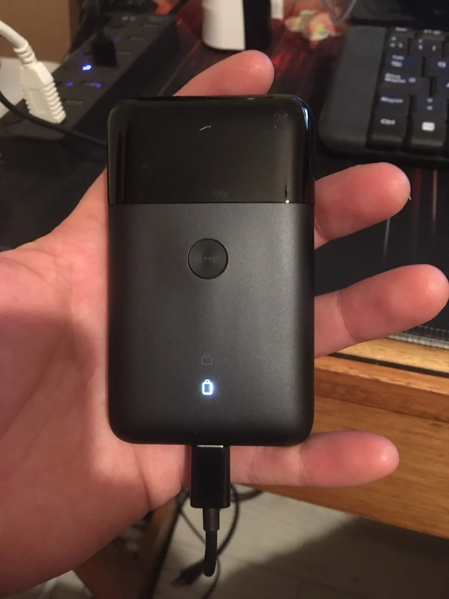 Маленькая бритва, которая не занимает много места, быстрая зарядка через usb-c. Простота обслуживания, водонепроницаемость, он крепится должным образом. Полезно на ходу, потому что маленький, он остается менее эффективным, чем электрические бритвы классического размера.