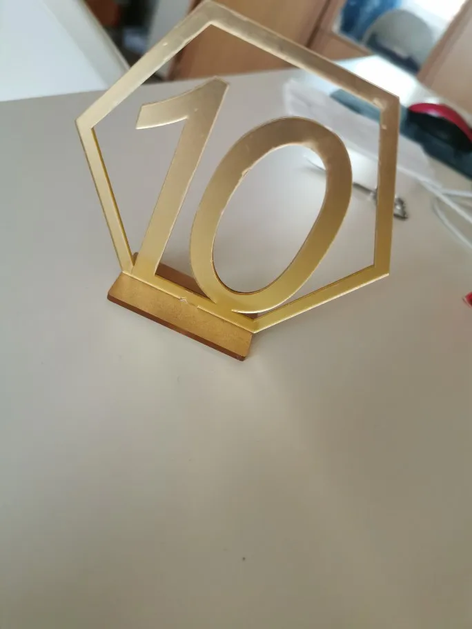 Цифры, сделанные из материала тандего, пластиковые, окрашенные для золота