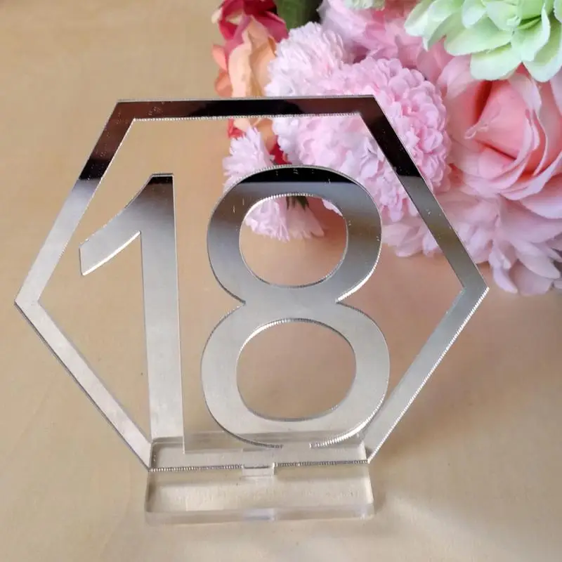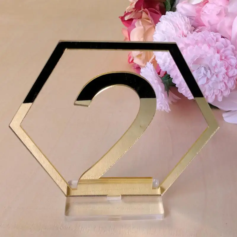 100% новый товар высокого качества.Экологически чистый акрил с тонкой обработкой, гладкая зеркальная поверхность, износостойкая.Идеально подходит для гостей, когда они прибывают на свадьбу или вечерние.Стабильное основание может прочно стоять на столах, не легко упасть, удобно использовать.-Дизайн с шестигранной формой делает прекрасное украшение.
