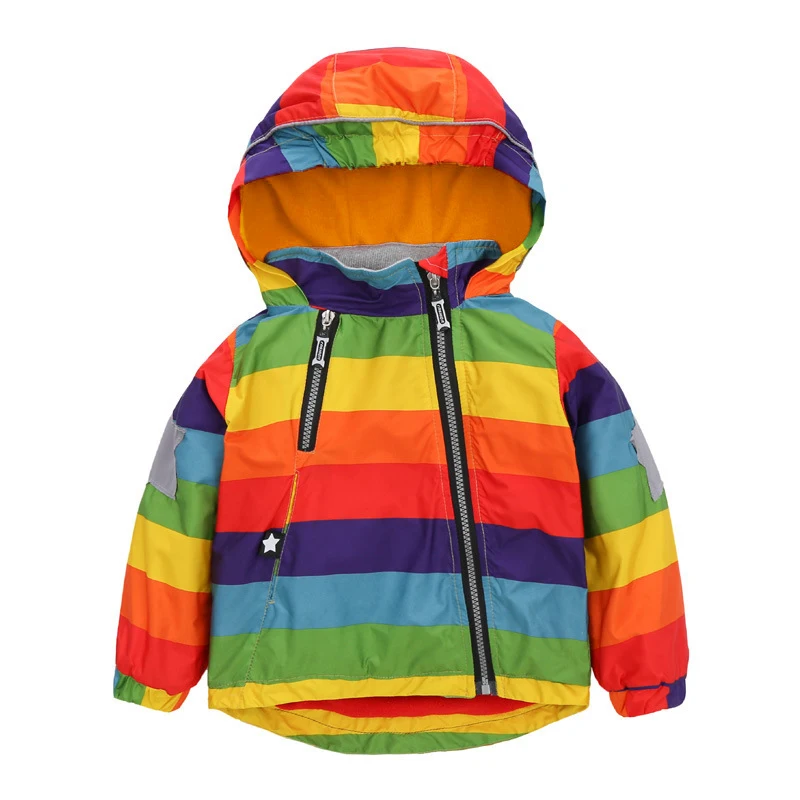 BINIDUCKLING детские мальчики девочки флисовые пальто радужная полоса Осенняя детская куртка с капюшоном ветровка теплая куртка с флисом
