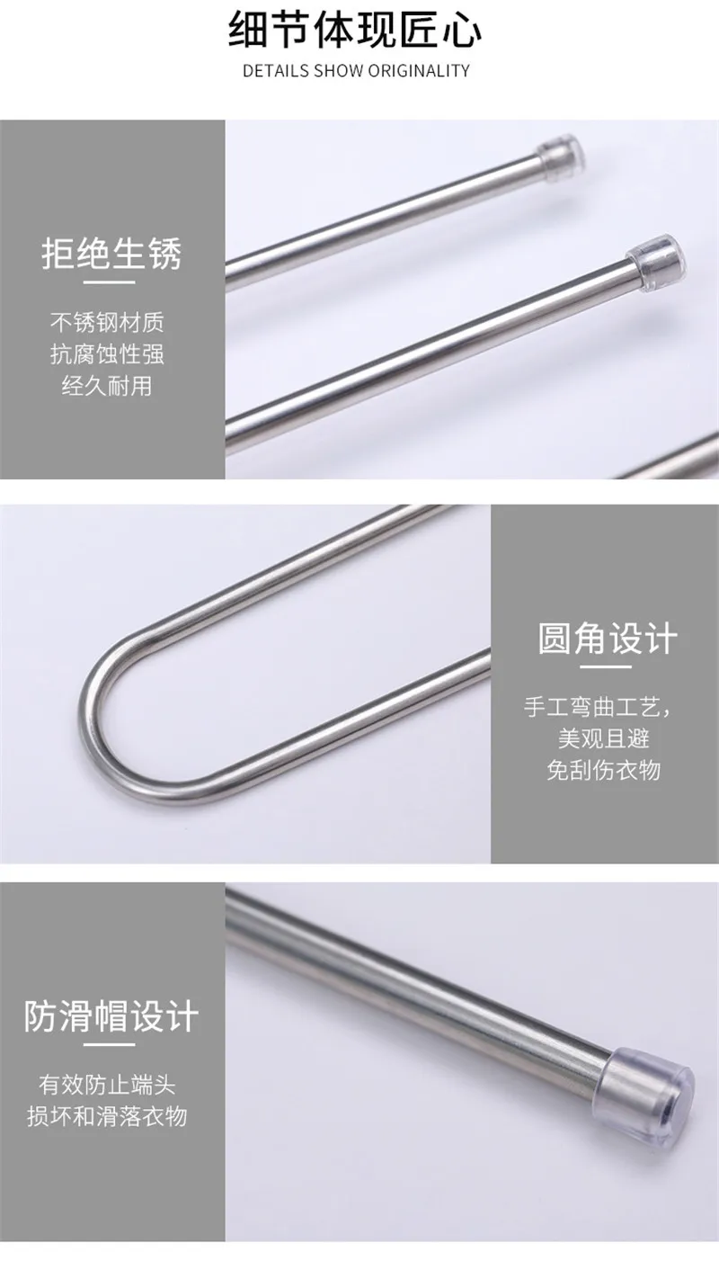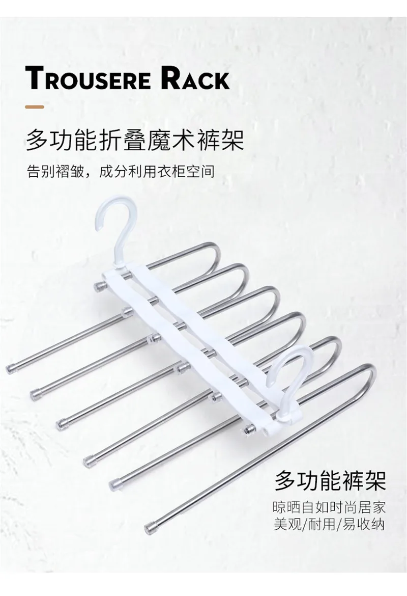 1. Изготовлен из высококачественной нержавеющей стали. Прочный, не деформируется.2. Уникальный дизайн позволяет легко и быстро подвешивать и разбирать слаксы.3. Нескользящие колпачки на обоих концах, приятные на ощупь, нелегко упасть.Применение: идеально подходит для подвешивания джинсов, брюк, брюк, шорт, шарфа, галстука или полотенец и т. д. идеально подходит для экономичного хранения в домашнем гардеробе.Посылка:1 шт. 5-слойная вешалка для брюк S-типаПримечание: Поскольку размер этого продукта измеряется вручную, допускается погрешность в 1-2 см.