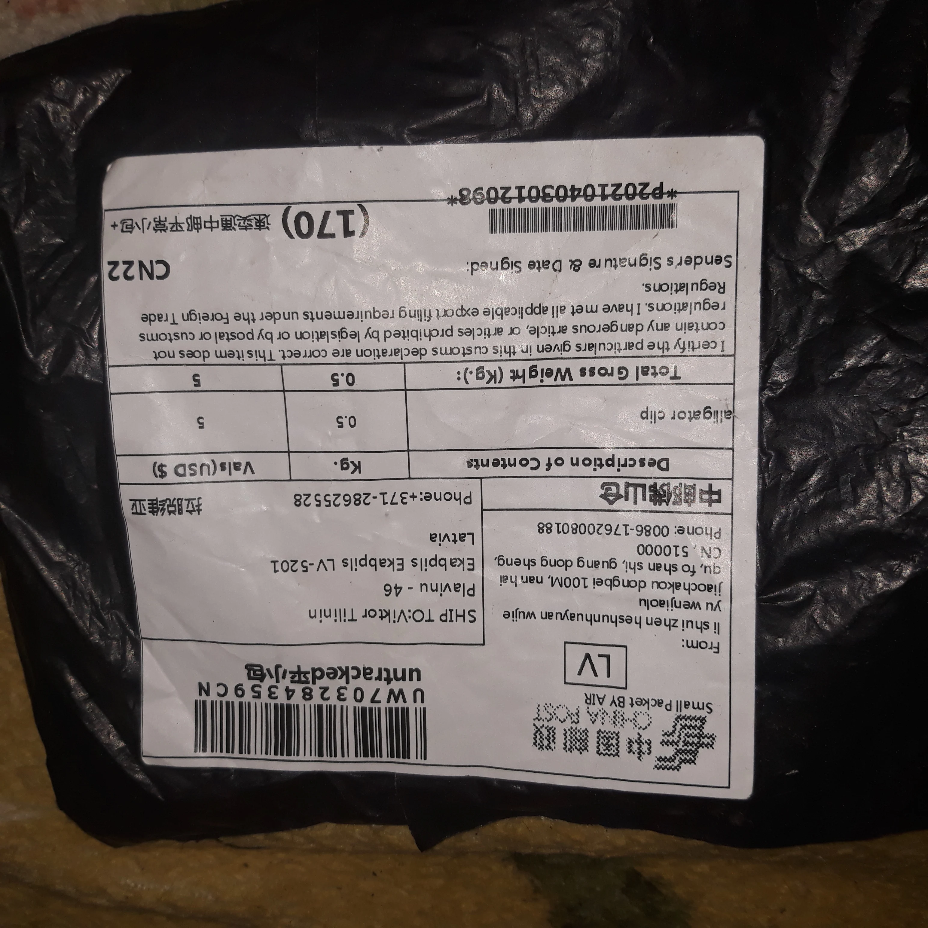 Страна: GR Color: Black 5Pcs Доставка: Yanwen Economic Air Mail 01.05.2021