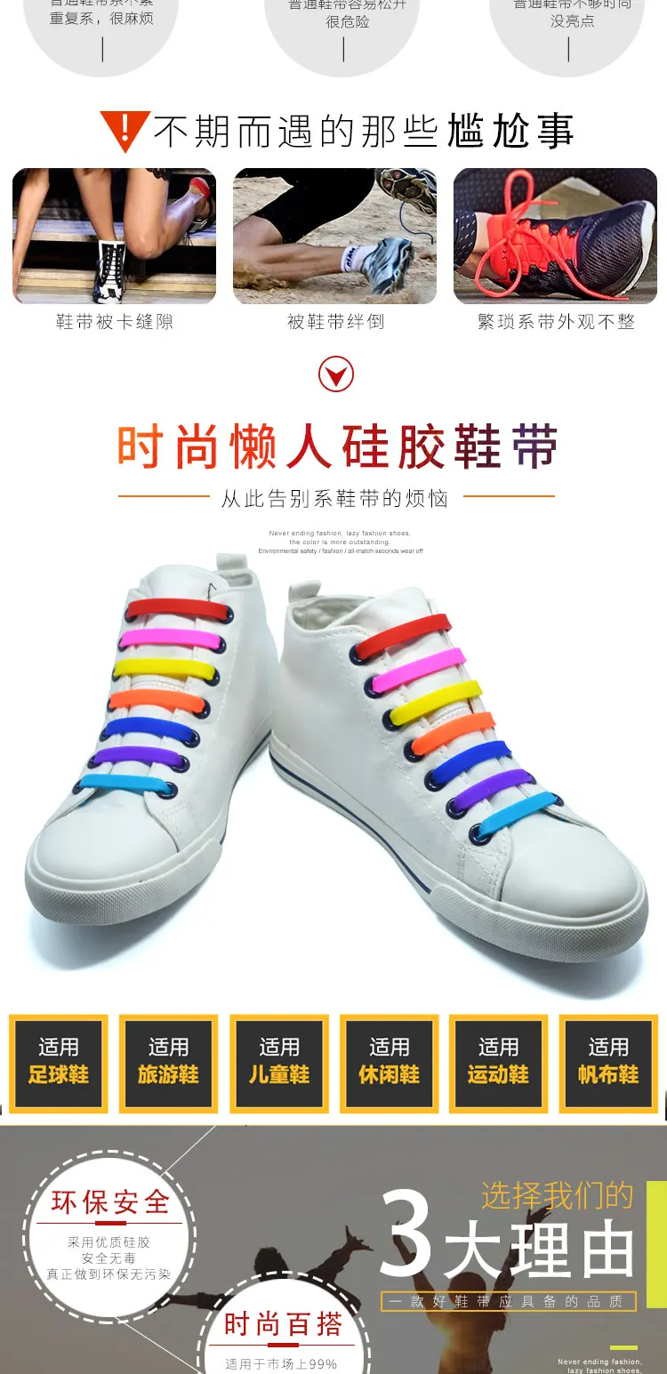 14 шт., силиконовые шнурки унисекс для бега, без завязывания