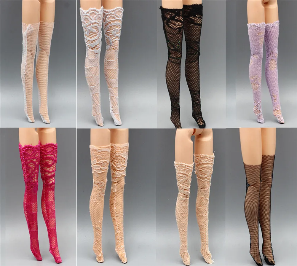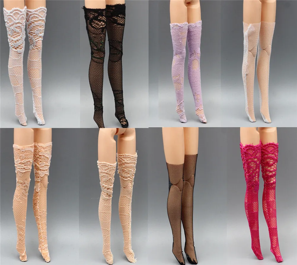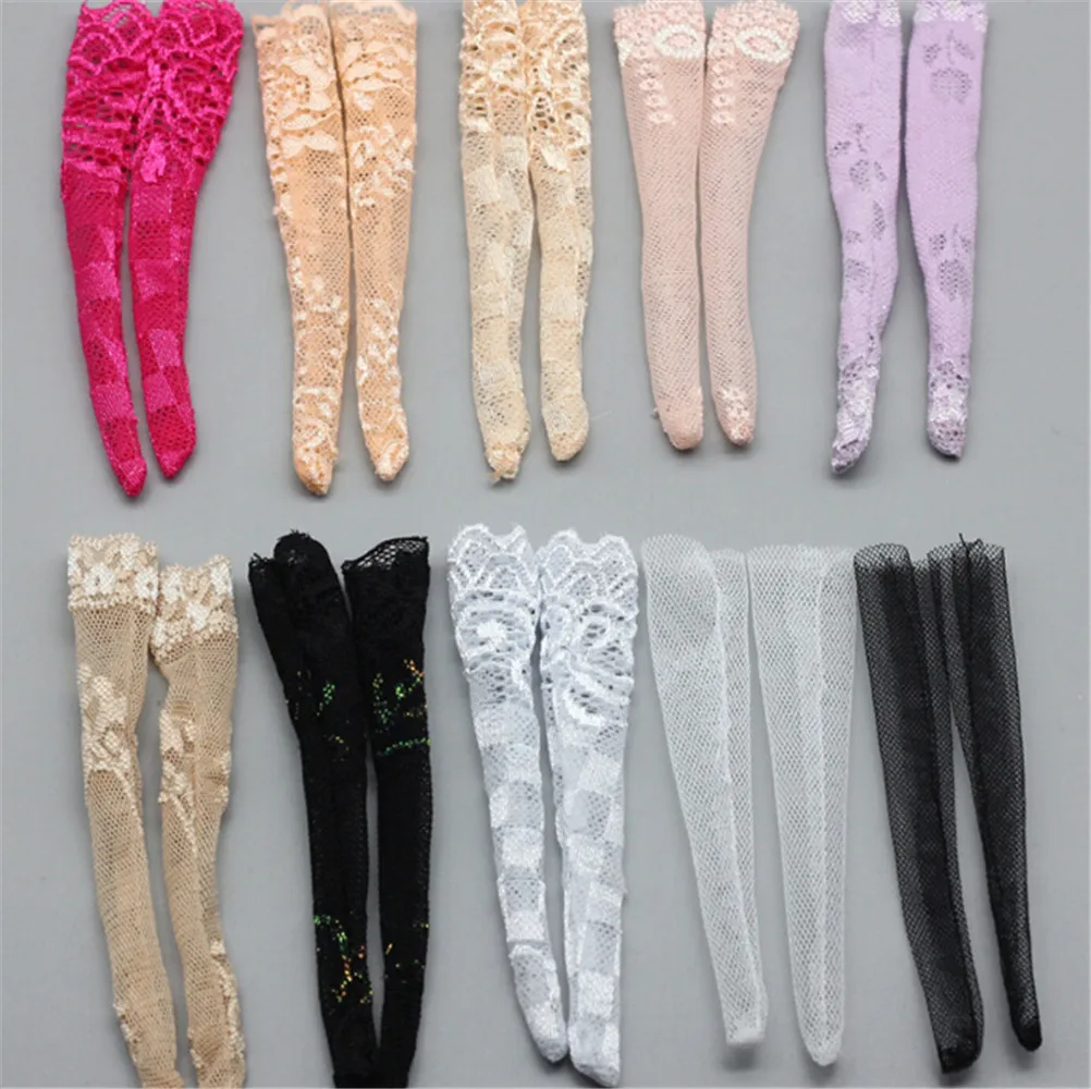 3 пары разноцветных кружевных носков, смешанные стильные длинные чулки, повседневная одежда, Одежда для кукол, аксессуары, подарки, игрушка