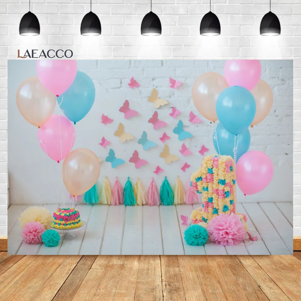 Фон для фотосъемки Laeacco для новорожденных на день рождения воздушные шары облака цветы баннер с надписью "Gifts" Пользовательские Фотографии