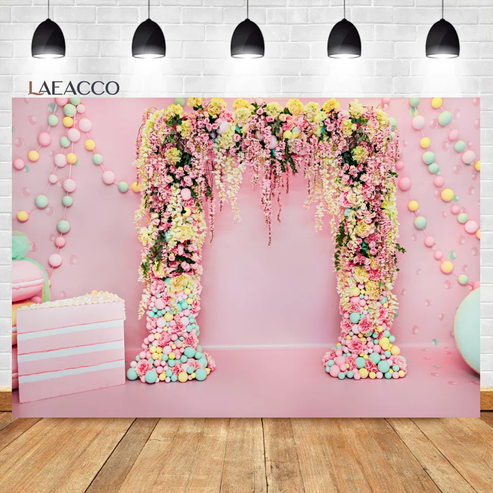 Laeacco день рождения фоны фотографии кирпичная стена розовые возду...