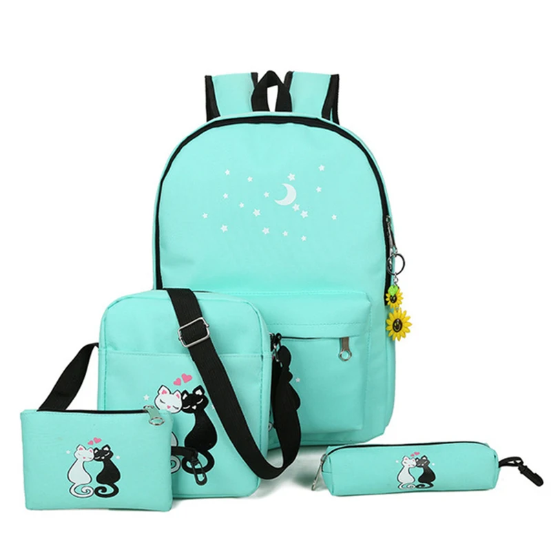 Модные школьные ранцы для девочек, рюкзак 4 шт.компл., Детские холщовые рюкзаки, школьные ранцы для подростков, Детские рюкзаки WBS466
