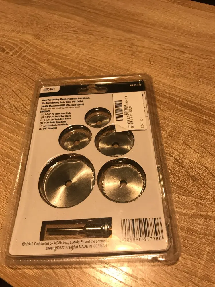 Хороший набор для Dremel. Разные размеры. Каждый диск подписан. Мне пришел заказ в фирменной заводской пластиковой упаковке. Я набором доволен. Своих денег точно стоит. Продавцу спасибо!