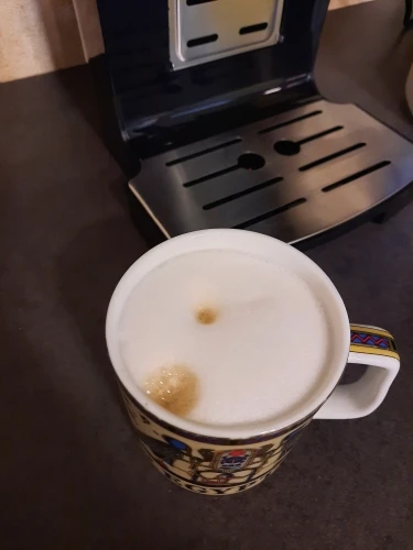 Хорошая кофеварка. Для своей ценовой категории. Кофе вкусный. Эспрессо крепкий, латте и капучино с отличной пенкой. Управление очень простое, все понятно даже без инструкции. Капучинатор требует промывки. Для этого есть функция самоочистки. Вместо емкости для молока, можно использовать саму коробку с молоком, что очень удобно. При первом включении потребовалась самоочистка, после все заработало.