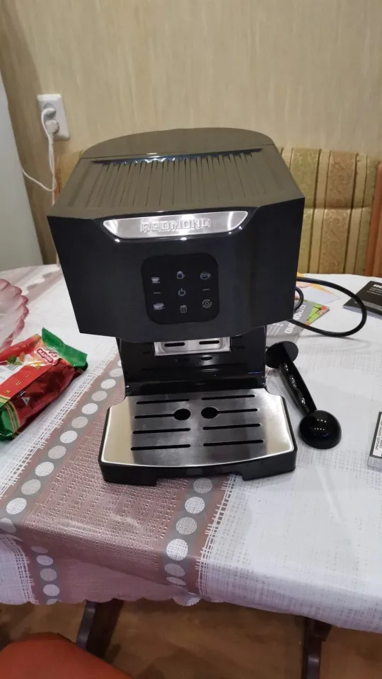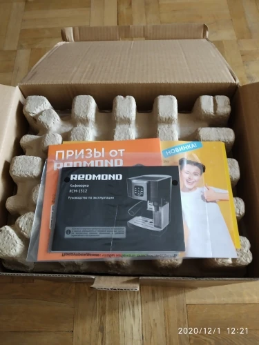 Стильная красотка у меня на кухне!:)заказ сделан 12 ноября, курьер доставил прямо домой 17 ноября, прекрасно, я считаю)))!!!кофе пока делать не пробовала, нужно изучить инструкцию, ведь это моя первая кофеварка:) Упаковано все очень тщательно и аккуратно, любовь начинается уже с распаковки :)))) красота! Я очень довольна своим выбором,мне нравится техника этой марки, с удовольствием пользуюсь и планетарным миксером Redmond, купленным ранее в TMALL.