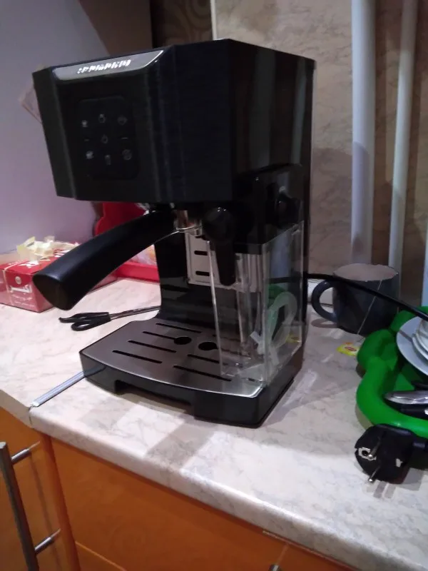 Все ок! Кофеварка делает отличный кофе! В дополнение заказал ещё кофемолку чтобы молоть уже свежее кофе, так вкуснее) отправили почтой России, Доставка неделя по РФ. Самое главное делать все по инструкции и не забывать прочищать после использования, иначе капучинатор забьётся остатками молока, а в рожковом отверстии сам кофе остаётся, тоже аккуратно салтфеткой прочищай!
