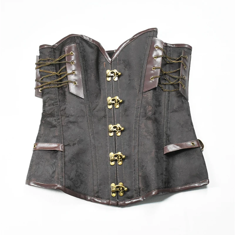 Beonlema стальной корсет в стиле стимпанк с металлической пряжкой Коричневый корсет в стиле панк топы на шнуровке женские сексуальные бюстье корсаж