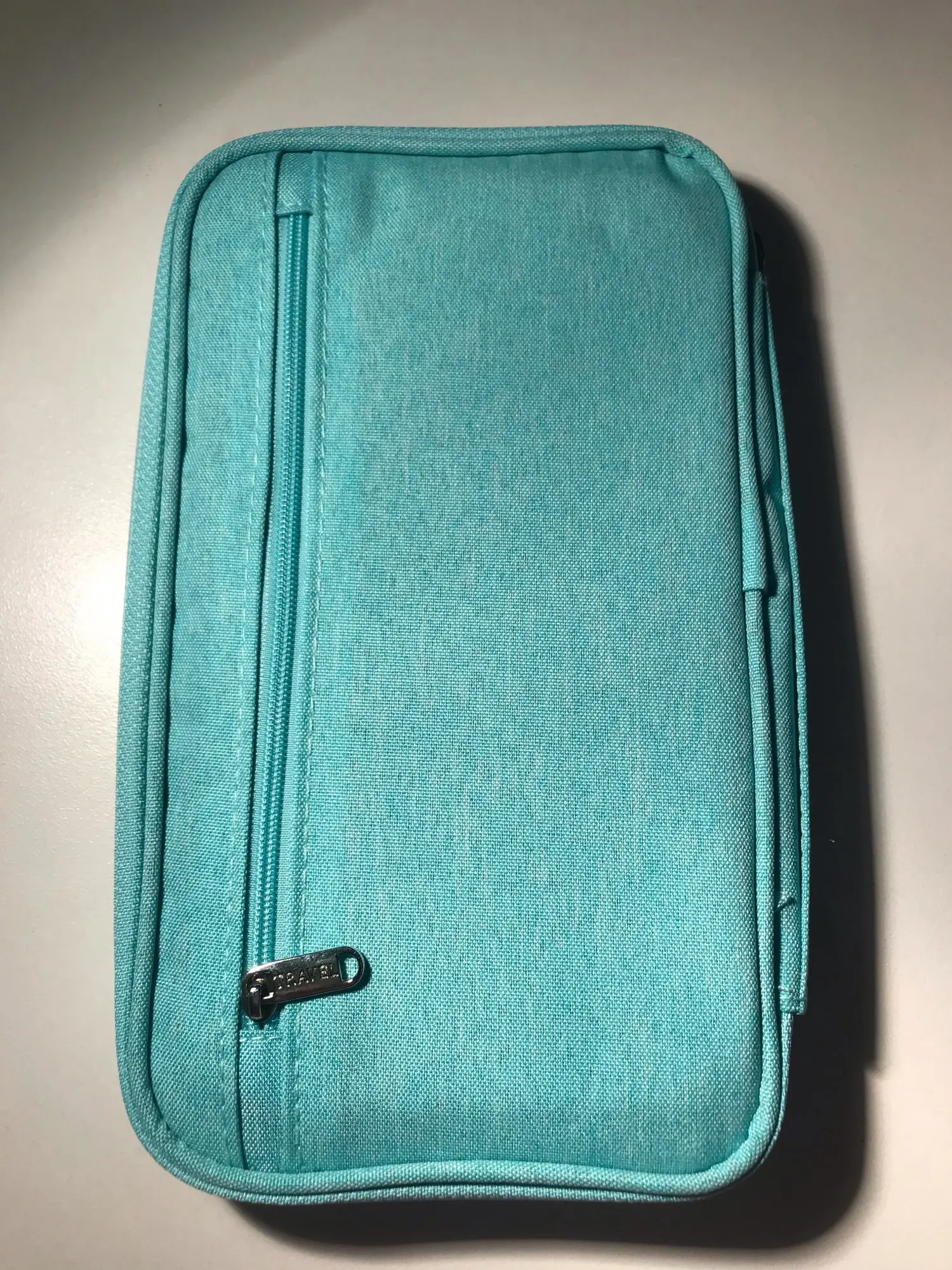 Цвет немного не такой как на фотке, материал джинсовый, короче - похож на светлые джинсы. Но удобненько, много чего вместить можно. Ну и в отделениях под паспорта - паспорт залазит не полностью, а немного выглядывает - не будет проблем с тем, что он куда-то внутрь убежит.