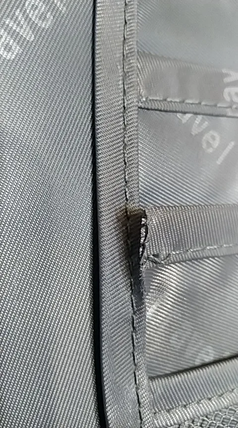 Соответствует описанию, большой, вместительный, очень много карманов. Прошито все качественно, нитки нигде не торчат, запаха нет.