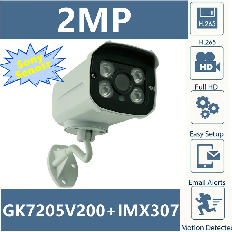 Sony IMX307 + GK7205V200 IP Металлическая Цилиндрическая камера видеонаблюдения наружная 2 МП 1920*1080 H.265 Низкое освещение IRC IP66 VMS XMEYE ONVIF P2P RTSP