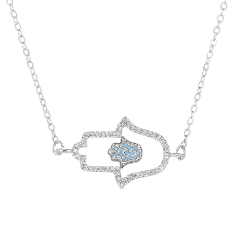 Product NamePave Zircon Turquoise Evil Eye Hamsa Hand Pendant Necklace