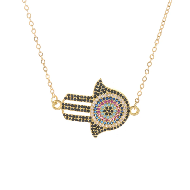 Juya, турецкое ожерелье, циркон, рука Хамса, Фатима, эмаль, от сглаза, кулон, ожерелье для женщин, ювелирные изделия ручной работы