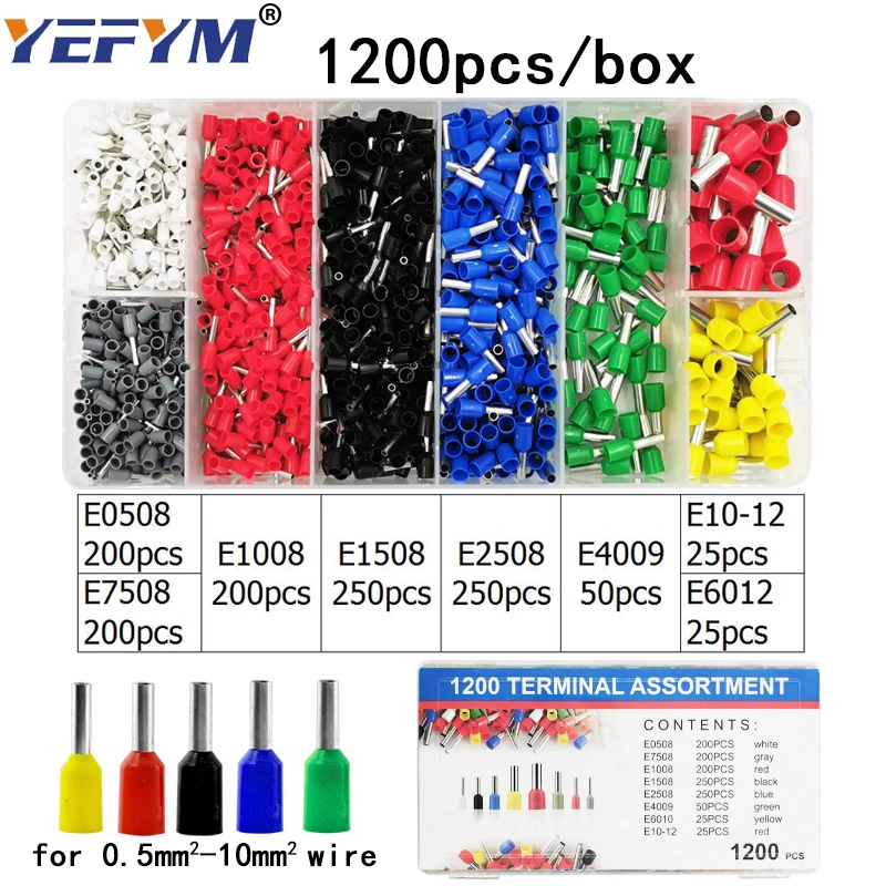 YWFYM трубчатые изоляционные обжимные клеммы, изоляционные кольцевые клеммы, заглушка 2,8 4,8 6,3, соединительный блок, 9 видов, комплект в коробке