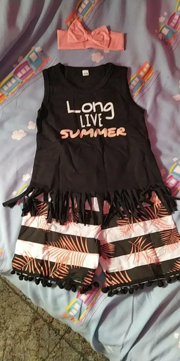 Летняя одежда для маленьких девочек; Футболка на бретелях с надписью; Шорты в полоску; Повязка на голову