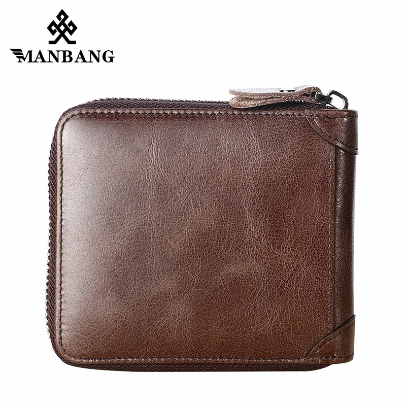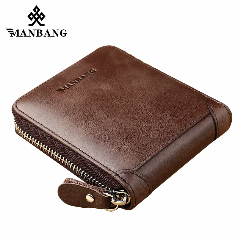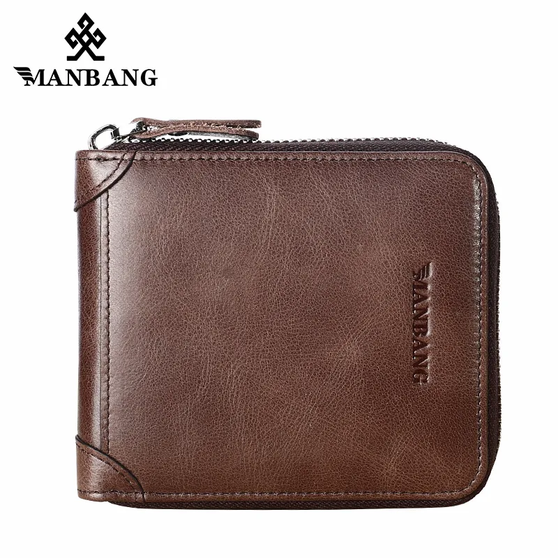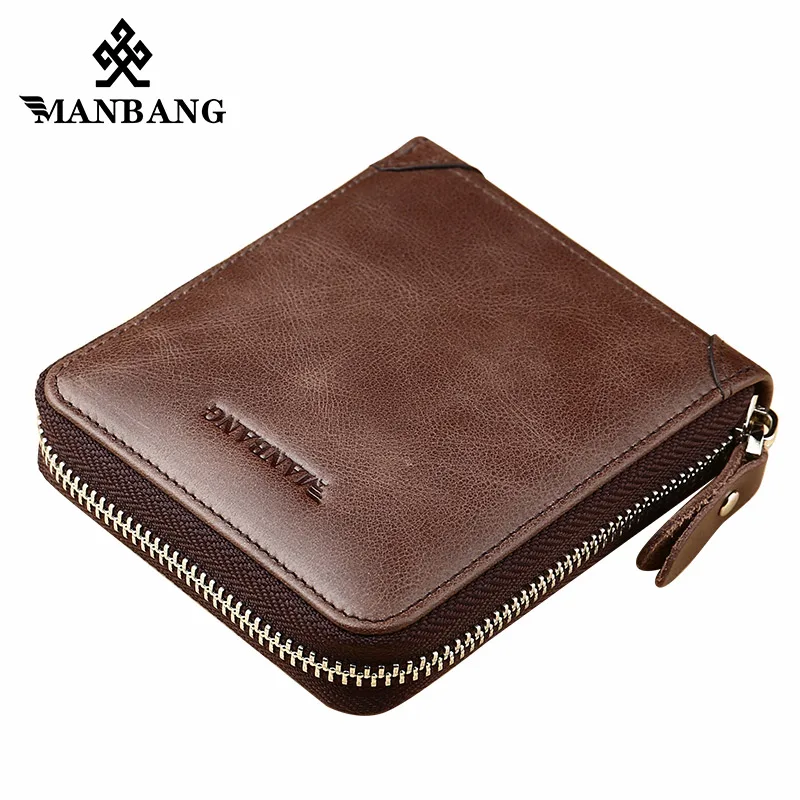 Кошелек ManBang мужской из натуральной кожи, Модный маленький винтажный бумажник с кармашком для мелочи, компактный брендовый клатч с кредитницей