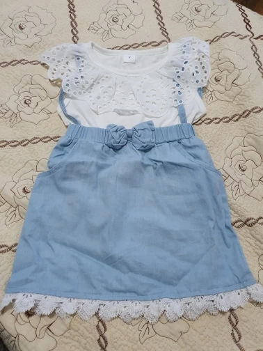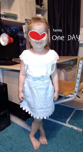 Такое покупаю уже второй раз. Очень милое платье. х/б ткань, хорошо на лето или в садик. Звезду сняла, в реале светлее, ну и торчат нитки, но не критично. Доченька ростом 96, размер подошёл хорошо, длина юбочки тоже, есть запас. Пришло быстро. Спасибо продавцу!))) Рекомендую.