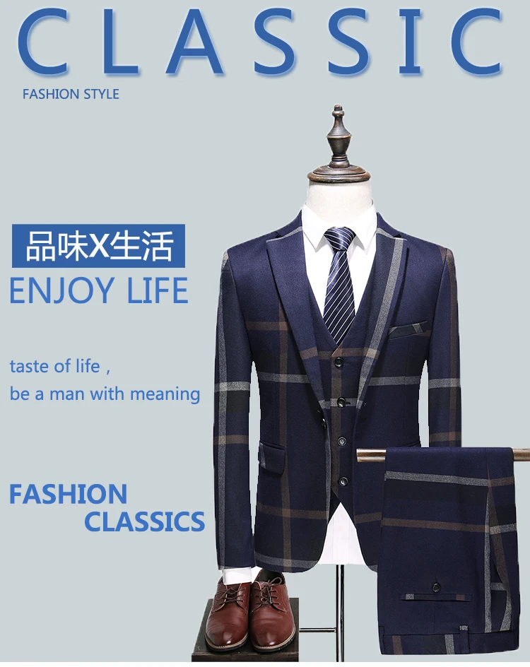 Мужской Клетчатый костюм из трех предметов 2020, мужской деловой По...
