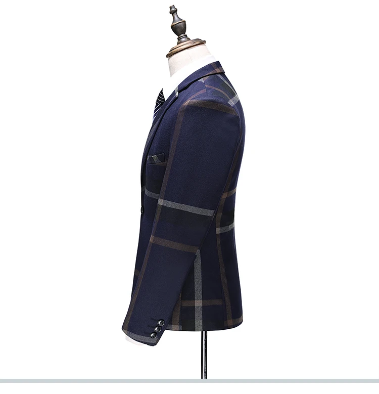 Мужской свадебный комплект из трех предметов, клетчатый синий и сер...