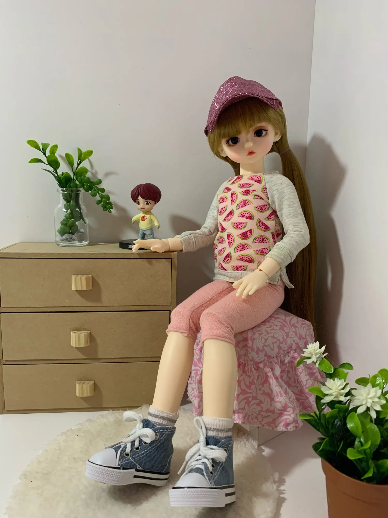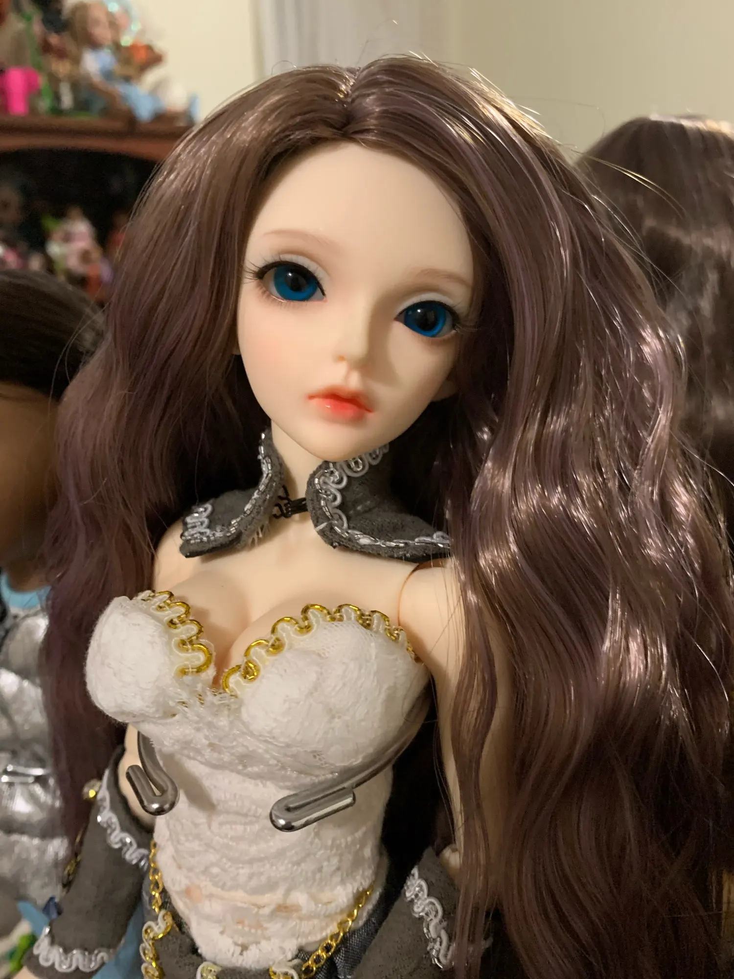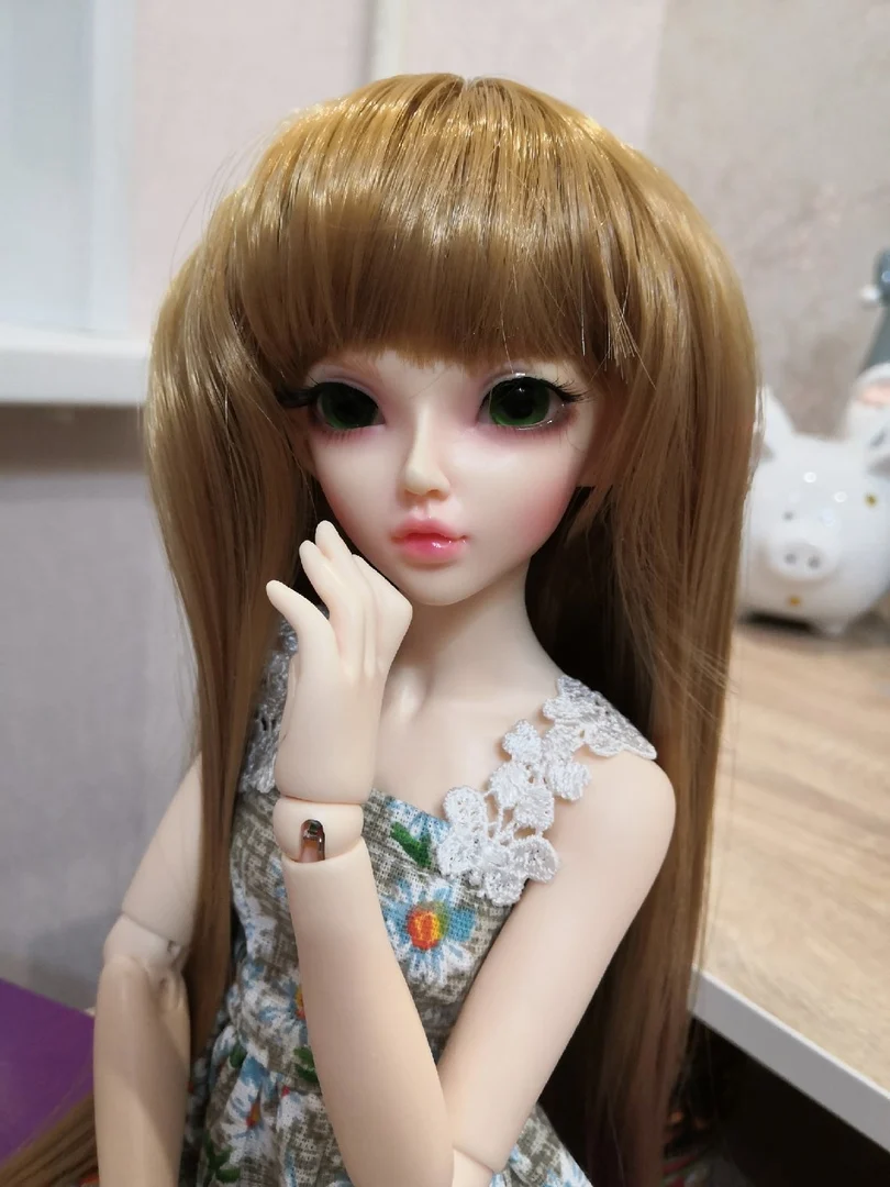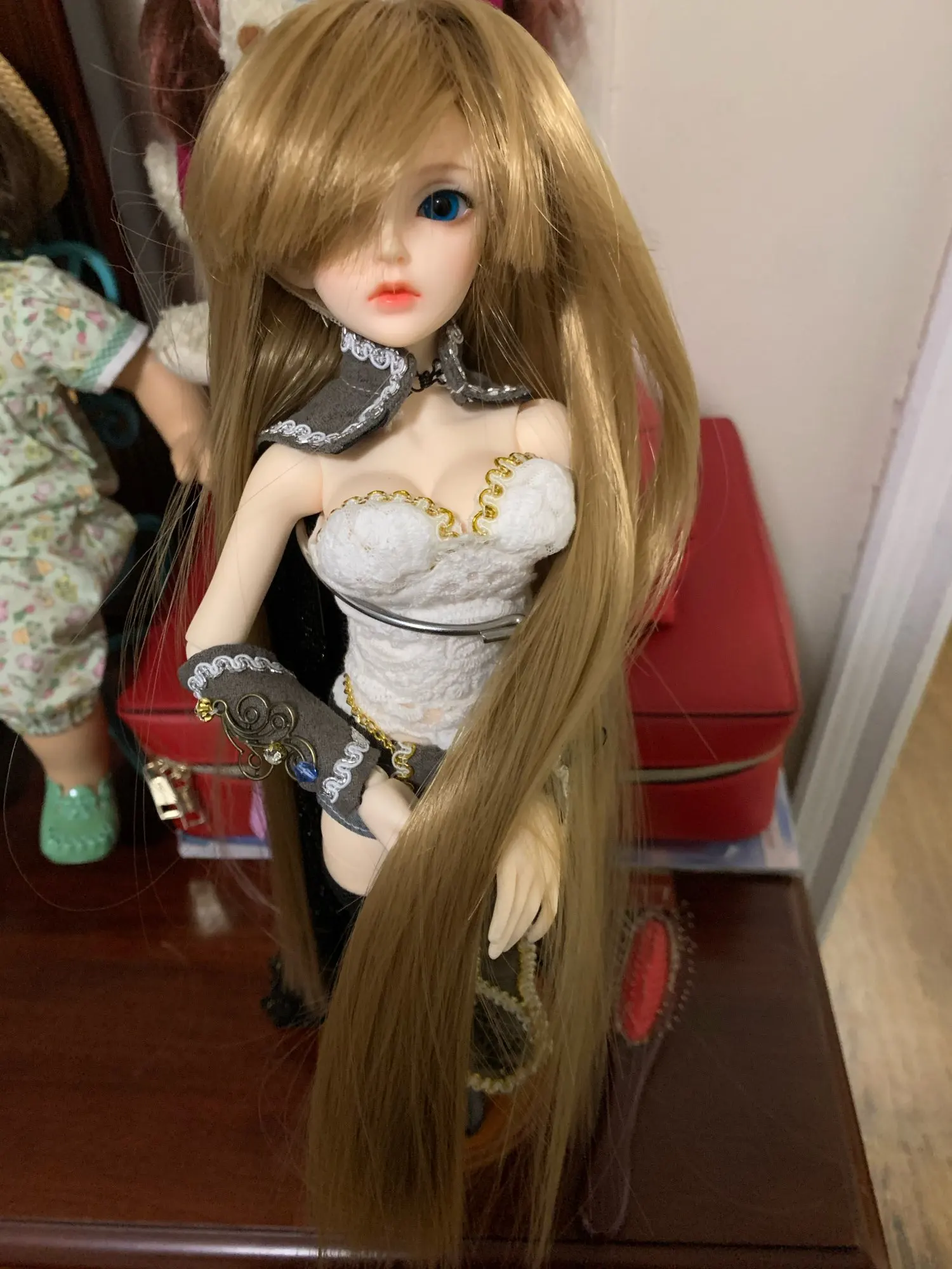 Заказывала 2 парика 1/3 и 1/4. Тот, который поменьше налез с трудом. 1/3 - отлично! Оба парика одной длины. Вот так выглядят на куклах. Доставка супер быстрая - всего за 2 недели! Продавцу большое спасибо, отвечал оперативно и все хорошо упаковал