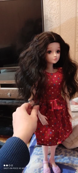Здравствуйте спосибо парик для куклы очень красивый ну моей кукле Фид парик болшеватый чучуть я ошиблась с размером надобыло по менше парик заказать Парик очень шикарный красивый ну моей ни подошол кукле парик класснй как настояшме волосы